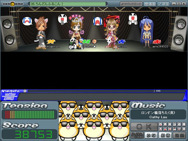 というわけで、すばらしきたりきろくをいただきました。 なんぞこのめんつ>< 場違い!場違い! 今までの最高記録35kちょいをふんわりと超え、 38koverを3回ほど出させていただきました! …がフルコンではございません>< 上のはその中で一番良かった38753のおしゃしんです。 どこで切れたのか覚えてませんが、恐らくラスト3Pと2Pかな? 明らかに私が崩しすぎで申し訳なさすぎでうええええんでしたTT でもかなりふるこんは近い気がしま…す?>< 先日ちょこっと計算して、ふるっても40k弱かなーと思ってましたが ひょっとしたら40k行くような気がしたり、しなかったり。 ふるしてからのおたのしみ、ですかね>< あけましてたりきる。