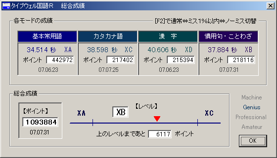 ぺこらっくですこんばんわ。 さりげなくもう8月なのですね。つきひはながれひとはとしおをかさねる。 最近時間の経過がかなりはやく感じます。 今日は最強めんばー様に囲まれてずっとまかこんぼ(+色々)してました。 以前のベスト32kをさくさくっと更新していき、ベストスコアが34950にΣ 何この数字ーーー>< どーばーの立場がありません!私の立場もありません! 想像以上にお3方のスコア底上げぱわーは強力でした。 よくあるふぇいすの ぼーいずあんどがーるす とらいとらいとらい こいにこいして の3行greとか何度も出たり。かっこよすぎ! 他にもperやら何やらもー凄まじかったのでありますが、 詳しい判定はきっとmogeさまがまとめてくれているはずです。(そこも他力!?) #というわけで覗かせていただきましたが、2箇所違うかなーと思ったところがあるので下の「補足(?)」に書いてみました。 #参照していただけると嬉しいです。まとめ+計算お疲れさまです。 さて念願のてれびどらまのようにperが今日初めて出せたのですが、 いきなりけっこーな確率で出るようになりました。 逆にゆーしゃるらぶが乱打癖ついちゃって全くperとれなくなりましたが(´;ェ;`)ウッ… まあ今日はかなり勢いまかせに打ってたので仕方ない(!?)ですが、 もっと落ちついて打たないと>< 乱打よくないー。 ついでにどーばーも1回フルコン間近までいきましたが、 最後のページで切れて35k台でした。とゆーか私が切りました(´;ェ;`)ウッ…オワタ あとはぴぐみぃ19692とか個人的に恐ろしい記録がでました>< PR よくあるはいふんそんぐ