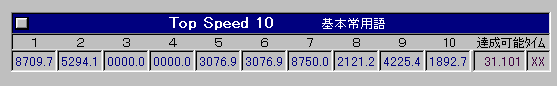 こんな日もあるさ>< TWとかかなり終わってたので放棄。ぽいっ e-typingとりあえずやってみました。 いちおー487が出たので登録。 知ってる単語(と言うのかな?)が多いので打ちやすいかも。 運が良ければ500いけるかなー? あとさくさくタイピング(打鍵トレーナー)の自己ベストを少し更新しました。 590 miss9 → 594 miss7 不調状態なのに更新できちゃったので、もしかしたら600目指せるかも?? また元気なときに挑戦してみます。 |