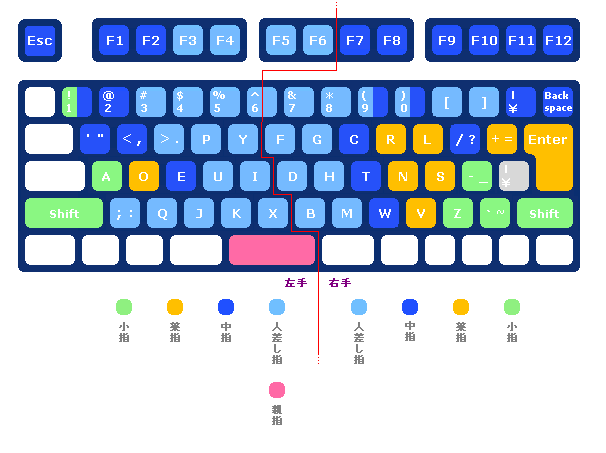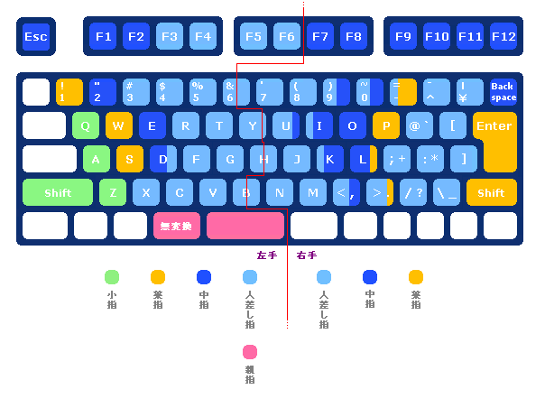 ブログとゆーか記録とゆーか…なんでしょう? てきとーにすたーとです。 まずは自己紹介的なことでも。 qweたいぱー(仮)で、dvoもちょっとかじってます。 英語、記号、ローマ字読み が超苦手。得意分野は特に無し(´;ω;`) タイパー達へ100の質問を見ると色々詳しく載っているかもしれません。 続いてブログ開始時(07/06/23)の成績。 qwerty・・・ TWJR: 常 34.514 [XA] カ 42.656 [XE] 漢 40.606 [XD] 慣 40.578 [XD] → 総合XC TWEW: 基 64.317 [SC] A-F 73.572 [SG] G-P 71.844 [SF] Q-Z 76.221 [SI] → 総合SF e-typing: 517(慣用句) WT: Lv3 dvorak・・・ TWJR: 常 49.297 [XH] カ 61.318 [SC] 漢 62.324 [SD] 慣 61.235 [SC] → 総合SA WT: Lv3 今はqweを頑張ってるのでdvoはしばらくお休みな予感です。混ざると危険! 現在の成績はブログ右側をご参照ください。 タイピング歴について。 qwe歴はおよそ9年ほどになるみたいです。長いなあ>< PCに触り始めたきっかけは、とあるタイピングソフトをやるため。 その後2,3年くらいはそれなりに積極的にタイピングに取り組むのですが、 色々あってタイピング活動を引退、というか放棄することに。 それまでの最終成績は TWJR: XB/XF/XF/XD 総合XDでした。 …それから5,6年だらだらと過ごすわけですが(?)、 06/10月下旬に歌謡タイピング劇場に出会 06/12/30にはS氏の影響でdvorakを練習しはじめたり。 (真面目に練習したの2,3ヶ月程度ですが><) さらに某タイパー様方の影響により、 07/6月頃からは歌謡以外のタイピングにも再び手を出し始め 同月21日にTWJRで上記の"最終成績"を全て抜くことに成功します。 実に5年半ぶりの更新でしたノェノ その更新をきっかけに、再び成長を目指してタイピングに取り組むことを決め、今日に至ります。 運指について。 ひとさしゆび活躍しすぎです>< 記号もフルキー数字もブラインドタッチがままなりません( p_q) (数字はテンキー派です) [右手と左手の境目] 6 … &のときは左手 6のときは気まぐれΣ Y … 基本左手 最適化でまれに右手 H … 気づいたらどっちも使ってて自分でもどう使い分けてるのか謎… B … 「BI」「BO」のときは左手 「BA」「BU」「BE」はHと同じく謎>< [2色なキー] 9 … 気まぐれ。 0 … 気まぐr - … 実に8年間人差し指でやってきましたが、07/6月中旬から薬指に矯正をはじめました。 ほぼ直ったけどまだ名残あり。 U … 基本人差し指 「HU」「BU」「NU」「MU」のときは中指 I … 基本中指 「OI」「LI」のときは人差し指 D … 基本中指 「DE」のとき人差し指 K … 基本中指 「KO」「OK」のときは人差し指 「KI」もまれに人差し指 L … 基本中指 英語を打つときのみたまに薬指 , … ハイフンと同じくずっと人差し指でしたが、気持ち中指に矯正中。全然直ってない\(^o^)/ . … 同じく、気持ち薬指に矯正中。直ってな(ry [打ち方いろいろ] しゃしゅしょ /sha shu sho ちゃちゅちょ /cha chu cho かくこ /ka ku ko 最適化でcを使うこともありますが、意識しないと使えません ふ /fu hu かなり気まぐれ ぁぃぅぇぉゃゅょ /la li lu le lo lya lyu lyo xの位置わかりません! ん → nn xの位置じちょう 主な使用キーボードはFUJITSUのFMV-KB312です。 後日のブログにも書いておりますが、同時押しでのエラーがやばいほど頻発します>< Realforceへの乗り換えを検討中ですが・・・all30gでないと厳しそう。 ちなみにノートパソコンのキーボードがさっぱり打てません。 職場とかでノーパソ触らされると涙目( p_q)エーン こんな感じでしょうか! いつまで続くかわかりませんがよろしくお願いいたします、ぺこりっ。 |