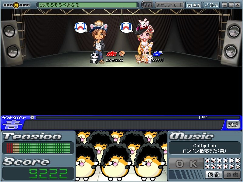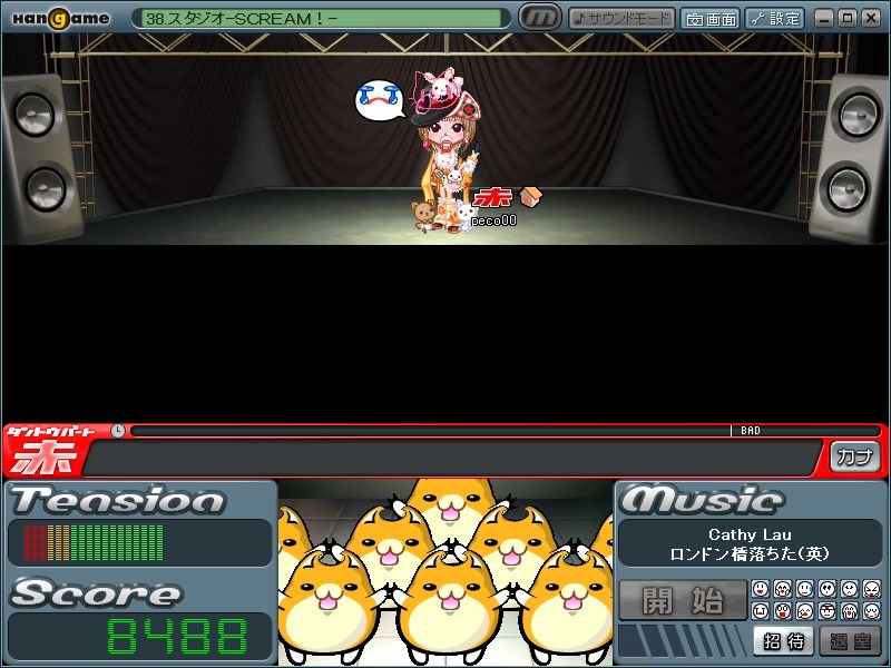 何故か2人とも泣いてますがちゃんとフルコンです。 ペア練習し始めてから何ヶ月かかったんでしょうか? ともあれ、どうもありがとうございました! ラスト2Pはneedles and pins担当でした。 上に当たって何度フルを逃したことか・・・ (下でも逃してるけど ずっとironbarswillが大の苦手でしたが、最近はbuilditupwithの方が危険な感じです。 どうして普通に打てる日と全く打てない日があるんでしょうね? れんしゅーれんしゅー・・・。 ついでにそろろんを大幅更新いたしました。 7925(b2o6)→8488(o7)! またも泣いているのはラスト2Pで歌詞を間違えるというあほミスをやらかしたからです・・・。 もったいないおばけが出るよ! そろそろ4人ふる数増量にわくわくしてみたいお年頃かもです。 |