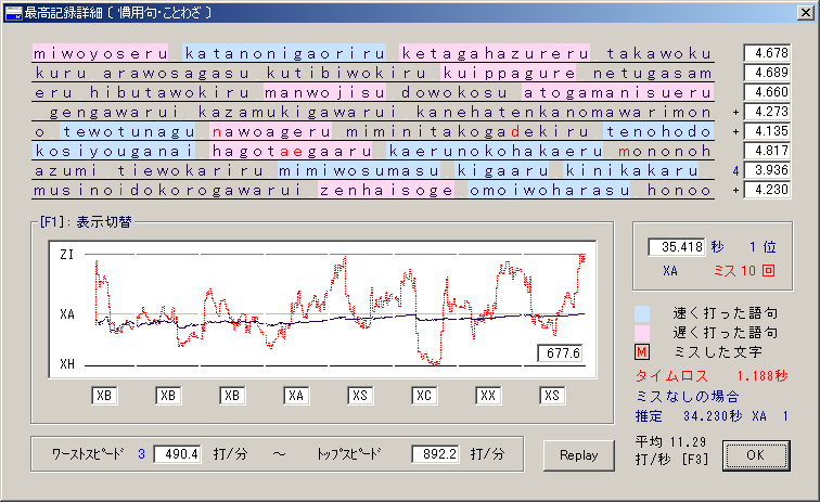 金曜日といえばGANGAS記録送信〆切日!! なんてことはすっかり忘れてたのですが、某C様との会話で思い出しました。 先日のリーチ状態から全く進んでいないTWR。 とりあえず22時頃から申し訳程度にぽちぽち打ってみるけど更新の気配なし\(^o^)/ 漢字数回、カタカナ数回と繰り返した末、あまりの不調っぷりに更新は完全にあきらめて 気まぐれで1ヶ月ぶり(!)に慣用句を起動。 ・・・したら1発で来ちゃったあああああ!! (なんかそんなんばっか>< 35.747[XA]→35.418[XA]! 全然たいしたことはない更新ですが、「あの状態」から脱するは十分すぎました。 ついに総合XS達成!!おつっしたーー!(? 結局XA→XSは2ヶ月半くらいかかったのかな? 1ヶ月以内に…とか言ってたのに途中から勢い失いすぎでしたね>< 今はそれなりにやる気がある時期なのでこのまま地味にがんばりますっ! 無謀だとわかっていても・・・Zがほしい・・・。 記録は23時過ぎに送りましたが、ちゃんと滑り込めているのでしょうかね!? おちょこ終了のお知らせ